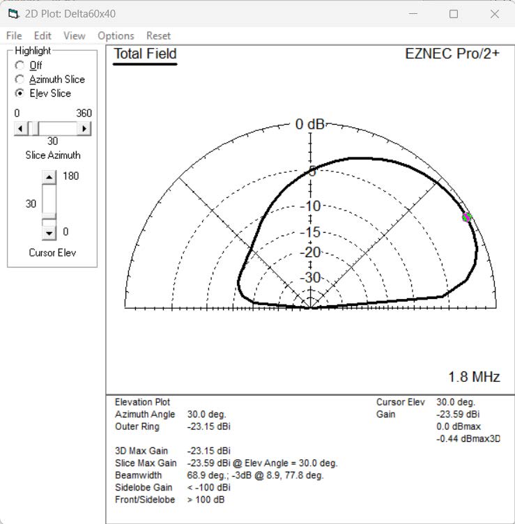Die oben gezeigte Flag hat aufgrund ihrer Größe einen Gewinn von -22 dBi. Eine kleinere Version hätte geringeren Gewinn, dafür leicht bessere Vor-/Rückdämpfung und einen etwas höheren DF. Außerdem ist die ursprüngliche Größe auf 80 m weniger nützlich. Wenn Sie die 160-m-Performance maximieren wollen, ist diese größere Antenne mit höherem Ausgangssignal besser. Ist Ihnen 80 m sehr wichtig, könnte eine 40×14-Fuß-Variante sinnvoller sein.